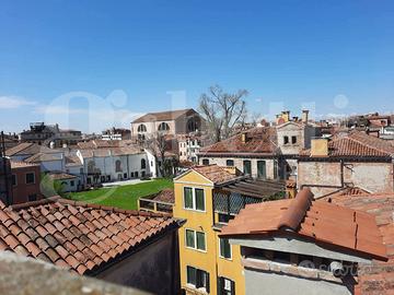 Il punto forte della proprietà è la splendida terrazza privata e panoramica, esposta a sud, un raro tesoro che offre una vista libera e soleggiata sui tetti splendenti di Venezia mixati con il profilo di tutti i monumenti della città. Situato al terzo piano, l'appartamento comprende anche una cucina completamente attrezzata, un bagno completo e soluzioni di stoccaggio su misura che uniscono praticità e stile. Il quartiere circostante è il più accogliente e autenticamente veneziano, con un collegamento molto rapido verso il Lido e le sue spiagge.
