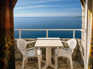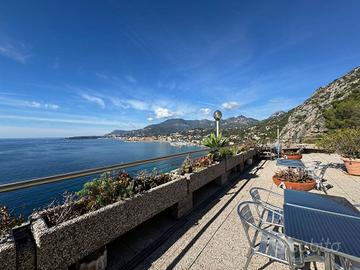 Situato su di una scogliera l'appartamento è dotato di un balconcino panoramico che si affaccia a picco sul mare con una vista unica e mozzafiato sulla Spiaggia dei Balzi Rossi.