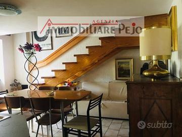 Appartamento 150 mq calpestabili. Primo piano 2 camere con bagno in suite, cucina completa con piastra elettrica, soggiorno con scala interna da dove si accede al secondo piano. Al secondo piano grande soggiorno con stufa olle in ceramica, pergolato coperto con panorama unico, cucina abitabile completa di arredo e stufa a legna, grande camera da letto con poggiolo e bagno finestrato con vasca. All'esterno terrazza/giardino, parte di esso è adibito a parcheggio esclusivo, collegato con l'appartamento da scale private.