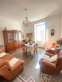 Vendo appartamento di 100 mq, in ottime condizioni, sito al quinto piano con ascensore, composto da: entrata su ampio corridoio, cucina abitabile con poggiolo che affaccia sul cortile interno, bagno con doccia e finestra, salone, camera matrimoniale molto grande, cameretta buia con finestra sul salone. Riscaldamento autonomo con calderina esterna. Completa l'appartamento una piccola cantina di proprietà. Prezzo trattabile.