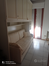 ))Affittasi grazioso appartamento, completamente arredato . La casa si compone di cucina soggiorno, camera matrimoniale, camera singola, bagno, balcone. Riscaldamento centralizzato a gasolio,pompe di calore in ogni ambiente. Parcheggio privato condominiale. L affitto è di €600 mensili più €70 condominio(include riscaldamento+acqua).