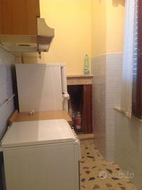- cucina con balcone e dietro cucina finestrato con camino a legna perfettamente funzionante