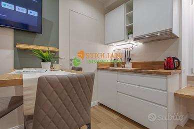 Via Mazzini, posizione centralissima e bene servita, miniappartamento arredato, di metri quadrati 50 circa, composto da cucina, camera matrimoniale e bagno. Impianto di riscaldamento autonomo. Formula comprensiva di tutte le spese, ideale per lavoratori o professionisti.