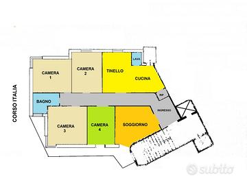 Via Polesine angolo Corso italia in stabile signorile dotato di doppio ascensore con portierato ampio appartamento con tripla esposizione composto da ingresso, cucina e tinello, 4 camere, salone, doppio servizio e ripostiglio