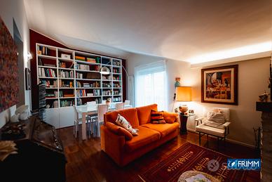 La soluzione misura 95 mq commerciali ed è composta da un ingresso su ampio e luminoso soggiorno con accesso al balcone, una cucina semi abitabile, due camere da letto, due servizi ed un comodo ripostiglio. La presenza di un altro balcone con accesso dalla camera matrimoniale e dalla cucina e l' esposizione est - ovest donano all'immobile una luminosità ottimale.