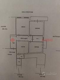 L' appartamento è composto da un ampio disimpegno, luminoso salone, due camere da letto, cucina e bagno.