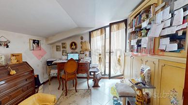 Il piano superiore, mansardato ma completamente abitabile e ben illuminato da finestre a parete, ospita due ambienti attualmente utilizzati come seconda camera matrimoniale e studio/cameretta, oltre a un secondo bagno completo con zona lavanderia.