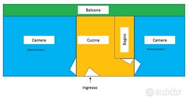 Immobile con due camere matrimoniali. Cucina a Induzione, Scaldino elettrico. Costo per camera matrimoniale 450,00. Totale costo appartamento 900,00 euro. Via Montenevoso 68. Prezzo non trattabile, no perditempo, persone referenziate, no animali. Contatti 3337918162