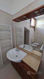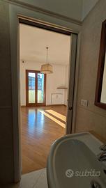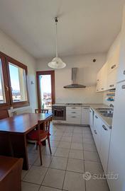 Luminoso appartamento posto al 2° ed ultimo piano di palazzina di 7 unità ubicata in una zona ben servita e vicina al centro. Appartamento composto da ingresso con comodo ripostiglio, cucina abitabile arredata con accesso a terrazzo, soggiorno-pranzo con accesso ad altro terrazzo, stanza ad uso studio/camera, bagno finestrato con vasca e angolo lavanderia, camera padronale con bagno esclusivo finestrato e terrazzino, altra camera con terrazzino. L'immobile ha ottime finiture, pavimenti in legno, serramenti doppio vetro, impianto di riscaldamento autonomo (caldaia datata), doppio climatizzatore zona giorno e zona notte, portoncino blindato e la comodità di un vano ascensore che accede direttamente all'interno dell'appartamento. Al piano scantinato ampia cantina di mq.30 e comoda autorimessa alla quale si accede tramite rampa. Posto auto scoperto esterno.