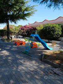 Nelle vicinanze di un market, una pescheria e un forno, a 350mt dal mare e a circa 2,5km dal centro, in un piccolo complesso a conduzione famigliare, affittiamo appartamento ideale per gruppi di amici o famiglie. La casa, è composta da zona giorno con cucina e divano letto, una camera matrimoniale, una camera con due letti singoli (su richiesta matrimoniale), un bagno, ampio spazio esterno in comune con altri ospiti con barbecue, parcheggio privato, zona giochi bimbi,wi-fi. Appartamento climatizzato zona con gazebo e tavolo per poter consumare I pasti a vostro uso esclusivo