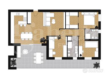 APPARTAMENTO 5 - GRANDE ZONA GIORNO CON BALCONE LOGGIATO Immobile posto al piano primo, con grande soggiorno-pranzo, cucina a vista e balcone loggiato, reparto notte composto da camera matrimoniale con cabina armadi, 2 camere singole e 2 bagni. Possibilità di bagno en suite. Garage singolo al piano interrato e posto auto di pertinenza al piano terra. Le immagini sono state realizzate sulla base del progetto esecutivo con finiture e materiali previsti nel capitolato delle opere. Il nuovo intervento prevede la realizzazione di una palazzina con struttura antisismica, dotata dei più moderni impianti tecnologici, il tutto volto a realizzare unità abitative con alta efficienza energetica. Le caratteristiche attraverso le quali verrà realizzato il fabbricato, comporteranno quindi per i residenti un elevato confort abitativo. In fase di progettazione e realizzazione vi è la possibilità di personalizzazione degli spazi e delle finiture. Tecnici qualificati saranno a disposizione per eventuale studio d'arredo e posizionamento delle tramezze. Il capitolato prevede, finiture di pregio quali pavimenti in ceramica di grandi formati, tapparelle motorizzate, riscaldamento a pavimento, tramite impianto con pompa di calore, predisposizione impianto aria condizionata, fotovoltaico dedicato per ogni singola unità. Ogni appartamento è dotato di autorimessa, inclusa nel prezzo indicato. Per fissare un appuntamento è possibile chiamare lo o inviare una mail di richiesta di contatto a info@gabettivignola.it. Sono disponibili ulteriori dettagli visitando il nostro sito internet gabettivignola.it