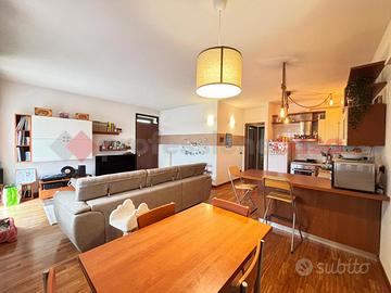 La zona giorno si sviluppa in un accogliente open space con cucina, soggiorno e accesso al balcone, ideale per godere di luce e aria naturale.