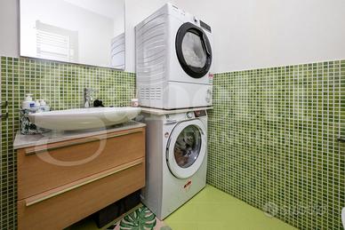 Completano la soluzione i due bagni, di cui uno finestrato ed utilizzato come principale, e l'altro di servizio utilizzato come lavanderia ma comunque dotato di tutti gli accessori necessari.