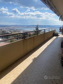 NO AGENZIE - Appartamento con spettacolare VISTA MARE e CITTÀ in palazzina signorile, silenzioso, posto al terzo piano con ascensore, composto da ingresso, grande salone (con canna fumaria e predisposizione per caminetto) con 5 finestre 2 portafinestre con accesso a 2 terrazze abitabili entrambe con totale vista golfo, cucina abitabile con accesso, tre camere da letto, due bagni finestrati, ripostiglio con cassaforte, due armadi a muro, box auto doppio con punto ricarica personale per auto elettrica a 400 kw raggiungibile con ascensore, cantina in muratura, giardino condominiale, sito a due passi da tutti i servizi e mezzi pubblici, termoautonomo, climatizzato.