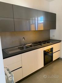 L'appartamento di 5,5 vani è composto da ingresso su ampio soggiorno che si apre su ampia cucina abitabile (con mobili su misura), 2 ampie camere da letto, un ampio bagno moderno con sanitari sospesi, doccia e finestra. Ampio disimpegno tra le camere con armadi a muro di cui uno racchiude la zona lavanderia.