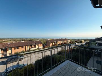 Fano, San Costanzo: in zona super panoramica, a 2 km dal mare, appartamento su due livelli posto al primo ed ultimo piano di un complesso residenziale di recente costruzione. Composto di soggiorno con angolo cottura finestrato, anche divisibile dal resto dell'ambiente, bel terrazzo vivibile con splendida vista mare, zona notte con 2 camere matrimoniali di cui una con balconcino privato, bagno grande finestrato, soppalco ad uso studio o eventuale terza cameretta. Il tutto completo anche di giardino privato e grande garage. Palazzina a mattoncini, termo autonomo, parcheggio comodo condominiale, ottime finiture generali. Se si ama il relax questo immobile è l'ideale per chiunque, un occasione da non perdere per godere di tramonti e albe uniche!