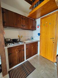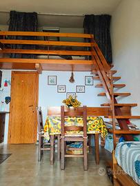 L'appartamento si compone di: Ingresso con comodo Armadio a muro, Soggiorno con Cucina a vista in muratura, Credenza in ciliegio, Tavolo con Panca, Divano con due Posti letto, TV Samsung con Parabola satellitare, Frigorifero Ariston, Ampia Veranda con Tavolo, Sedie e Panca, Soppalco finestrato con due Posti letto e Cassettiera, Camera da letto matrimoniale con accesso ad un Balcone, Bagno con doccia, Giardino privato con Doccia e Barbecue, Posto Auto scoperto.