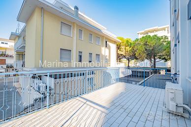 L'unità è dotata altresì di un generoso terrazzo vivibile che regala una meravigliosa vista sul mare: il luogo ideale dove trascorrere serate estive all'aperto e godere del panorama circostante.