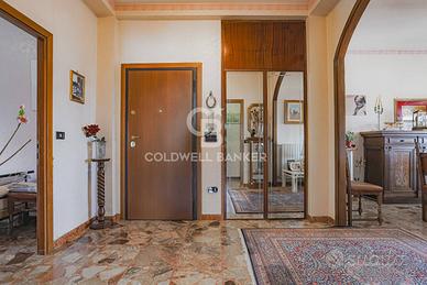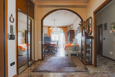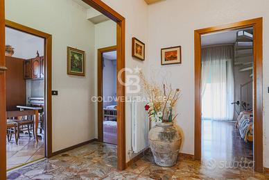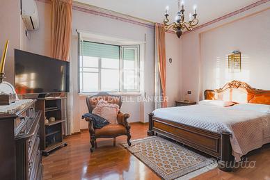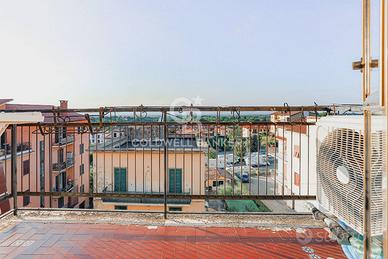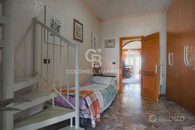 Proponiamo in vendita un ampio appartamento su due livelli allultimo piano di un elegante condominio in cortina, con ascensore e affacci panoramici. Il primo livello (4° piano) è composto da ingresso, soggiorno con camino e balcone, cucina abitabile con balcone, bagno, due camere matrimoniali con parquet e una cameretta con balcone. Il secondo livello (5° piano) ospita un monolocale con cucina a vista e camino, oltre a una splendida terrazza verandata di 25 mq con vista mozzafiato. Limmobile è in buono stato, non necessita di ristrutturazione e dispone di aria condizionata nella zona giorno. La zona, tranquilla e residenziale, è ben collegata ai servizi, con ampie possibilità di parcheggio. Completa la proprietà una cantina.