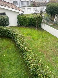 Appartamento su due piani, cucina, soggiorno, tre camere due bagni, terrazzo, giardino, garage. ? 800 mensili. Circa 110mq