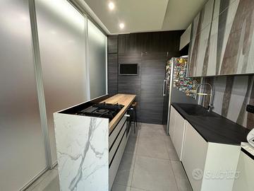 Immobiliare FRANTO-GIUGLIANO propone in vendita in Via Santa Caterina Da Siena, in prossimità della "Chiesa dei Monaci" appartamento luminoso in un parco signorile situato al terzo piano, esso si presenta in ottime condizioni con rifiniture di lusso, e con una disposizione interna razionale e ben distribuita, offrendo ampi spazi e comfort. La soluzione è composta da: ingresso, ampio salone con cucina living, diviso da una porta in vetrata, ambiente luminoso e accogliente e perfetto per momenti conviviali, 1 camera da letto matrimoniale spaziosa con cabina armadio, 1 ampia cameretta, ideale per bambini o studio, 2 accessori con tutti i comfort, lavanderia, e doppia esposizione con un ampia balconata terrazzata perimetrale, ideale per momenti di relax e convivialità. Completa l' immobile un box auto di proprietà. La soluzione rappresenta una soluzione ideale per chi desidera vivere in un contesto tranquillo e decoroso, mantenendo al contempo la vicinanza ai principali servizi e vie di comunicazione.