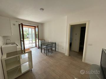 Affitto appartamento bilocale 45mq + 100mq giardino zona Cospea 2, di recente costruzione classe energetica D, ideale per una o massimo due persone, riscaldamento a pavimento, doppi vetri, porta blindata, portico verandato, videocitofono, ascensore, mobiliato nuovo, referenze richieste, condominio compreso