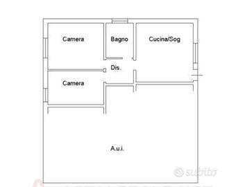 Trattasi di appartamento al piano rialzato composto da un vano di disbrigo sul quale si affacciano tutti i vani: una cucina, un bagno e due camere.