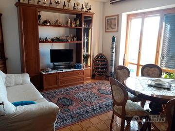 Appartamento in buonissimo stato di 86 mq sito in zona residenziale tranquilla. Ingresso è raggiungibile dopo un piccolo cancello dove si trova una zona con aiuole e pavimento piastrellato. Saliti le scale una doppia porta ci proietta in un corridoio.. . alla nostra destra la cucina, su misura con porta finestra sul terrazzo. Andando avanti troviamo la sala con doppia porta finestra grande, sempre sul terrazzo, dove troviamo 2 tende per il sole.