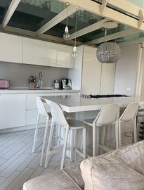 In zona residenziale a ridosso del centro cittadino attico di 110 mq su palazzina di tre piani con soppalco in vetro nella zona giorno, soggiorno, tre camere, due bagni, tre balconi a perimetro dell'appartamento e garage