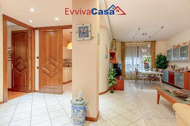 Lingresso si apre su un luminoso soggiorno con pratico ripostiglio; a seguire troviamo una cucina abitabile con accesso al primo balcone. La zona notte è composta da due camere matrimoniali (una delle quali con accesso al secondo balcone), una cameretta e due bagni finestrati, comodi e ben distribuiti lungo il corridoio.