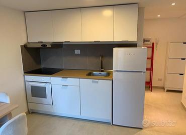 Disponde di ingresso con cucina e al piano di sopra letto matrimoniale con bagno annesso ( compreso di lavatrice ).