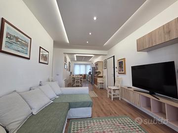 Goditi la vista mare da uno dei due balconi e rilassati con aperitivi o cene estive. L'appartamento è dotato di aria condizionata e riscaldamento con fan-coil assicurando un clima perfetto in ogni stagione. La classe energetica A++ ti permetterà di risparmiare sui costi energetici.