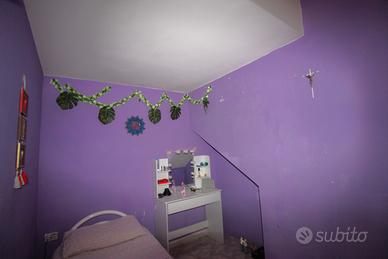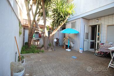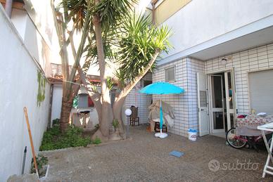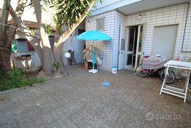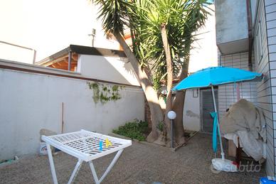 L'abitazione si apre su una verandina antistante, per momenti di relax all'aria aperta. Sul retro, abbiamo invece un giardino pavimentato che offre possibilità di svago e ospita un ingresso indipendente.