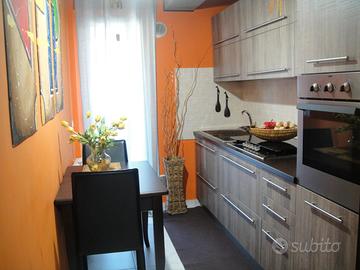 In stabile di nuova costruzione, luminoso appartamento piano 2° termoascensorato, composto ingresso-soggiorno, cucinino, due camere , bagno, balcone, posto auto scoperto, aria condizionata. Ottime condizioni. Nel prezzo è compreso tutto l'arredamento. Ottimo anche per investimento.