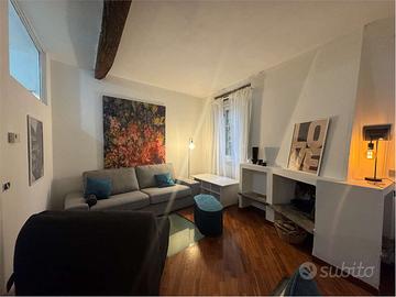 In stabile vecchia Milano, proponiamo al piano rialzato, bilocale arredato di 60 mq circa disposto su due livelli . L'appartamento gode di un doppio ingresso ed è così composto: soggiorno con cucina a vista e bagno finestrato con box doccia. Una scala interna conduce al piano ribassato dove è presente una camera da letto matrimoniale, con due finestre.