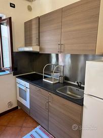 L'ingresso si apre su una zona living moderna e ben organizzata, con angolo cottura completo di tutti gli spazi necessari per vivere in modo pratico e confortevole.
