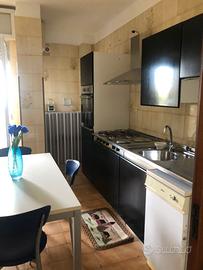 Ampia camera matrimoniale, camera 1 letto, soggiorno con tv ,cucina completa, bagno con cabina doccia, lavatrice, balcone molto ampio, totale interno 82 mq, termoautonomo a gas. Ampia cantinola /ripostiglio, parcheggio per un auto nel giardino condominiale. Affitto mensile 480 + condominio circa 45-50 mensili (comprende luce scale, pulizia scale, consumo acqua e fogna, amm.re condominio).