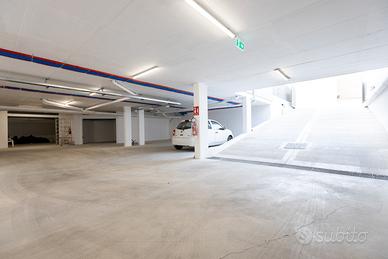 Posto auto coperto in garage chiuso di circa 40 mq al piano interrato collegato con ascensore.
