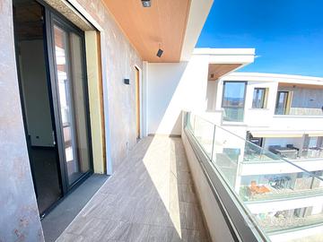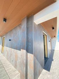 PIANO QUARTO: Accessibile sia dal vano scala, sia dal vano ascensore che collega direttamente all'immobile, dove troviamo un ampio disimpegno, cuina-salone living con accesso sul primo terrazzo con esposizione solare "EST-SUD" per momenti di convivialità e relax; Dall'ambiente giorno troviamo un comodo accessorio di servizio; L'ampio disimpegno collega anche verso la zona notte, dove troviamo: due camerette, un bagno principale e una spaziosa camera matrimoniale con cabina armadio e bagno privato. L'intero lato notte è circondato da balconate terrazzate che si collega su un secondo terrazzo a livello, garantendo luminosità e una vista piacevole.