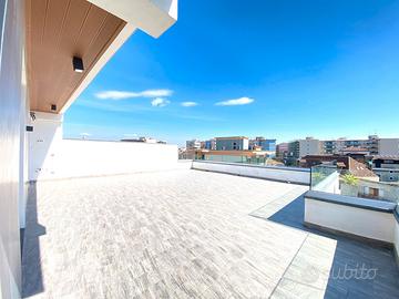 L'attico è sviluppato su un unico livello, con una superficie totale di 160MQ di interni, oltre a ben DUE terrazzi a livello (Attrezzati di impianti).