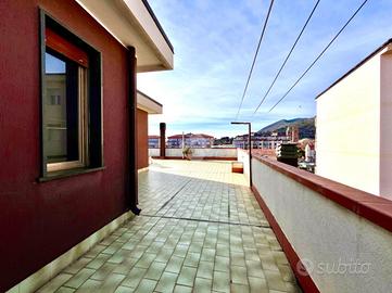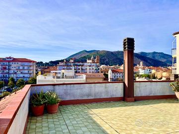 A pochi passi dal centro storico di Albenga con splendida esposizione al sole, ATTICO DI RARA REPERIBILITA' CON SPLENDIDO TERRAZZO PANORAMICO DI OLTRE 100 METRI. L'immobile presenta al suo ingresso la zona giorno con cucina a vista che conduce al disimpegno tramite il quale si accede alla prima cameretta, al bagno finestrato ed alla seconda spaziosa camera matrimoniale. Tutti i locali hanno accesso diretto al terrazzo, ideale per momenti di relax all'aperto. La posizione strategica, la comodità di avere tutti i servizi a portata di mano e la vista panoramica rappresentano un'opportunità unica per chi cerca una soluzione abitativa esclusiva in una delle zone più affascinanti della città.