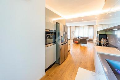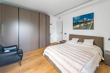 Al primo livello della proprietà, ci accoglie un ampio e luminoso soggiorno doppio, ideale per momenti di relax e convivialità, caratterizzato da grandi vetrate che permettono l'accesso a un generoso balcone, perfetto per godere della tranquillità circostante e della vista panoramica. Questo ambiente rappresenta il cuore pulsante dell'abitazione, dove la luce naturale è protagonista, creando un'atmosfera calda e accogliente. Adiacente al soggiorno, troviamo la cucina a vista, spaziosa e moderna, che può essere utilizzata anche come cucina abitabile. Da qui si accede a un secondo balconcino, perfetto per creare una piccola oasi all'aperto, ideale per godersi un caffè o una colazione all'aria aperta. Il disimpegno notte separa la zona giorno dalla zona notte, garantendo la massima privacy. Da qui si accede ai due bagni padronali, entrambi arredati con materiali di alta qualità e dotati di tutti i comfort. La zona notte include due ampie camere matrimoniali. La prima camera, luminosa e ben organizzata, si affaccia sul silenzio del cortile interno, mentre la seconda camera matrimoniale è dotata di una spaziosa cabina armadio e di accesso diretto al balcone, che aggiunge un ulteriore spazio privato esterno per godere della vista.