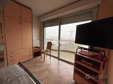 Dall'ingresso abbiamo accesso ad un'ampio e luminoso soggiorno adibito a camera da letto e una camera da letto matrimoniale serviti da un balcone di generose metrature, una cucina separata servita da un balconcino sempre adibita a cameretta, e un bagno finestrato con box doccia.