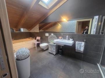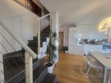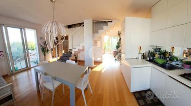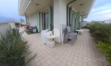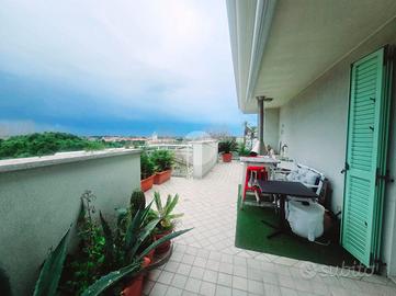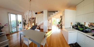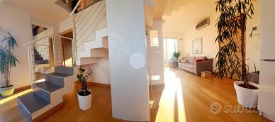 IGEA MARINA Nel centro di Igea Marina, a soli 50 metri dalla spiaggia, proponiamo in vendita un attico duplex unico ed elegante. Situato al quinto piano di una raffinata palazzina dotata di ascensore, l'immobile si sviluppa su circa 120 mq distribuiti su due livelli estremamente luminosi grazie alle ampie vetrate scorrevoli che collegano la zona giorno open space all'incredibile terrazzo abitabile di ben 74 mq. Il soggiorno pranzo (26,45 mq) è impreziosito da parquet pregiato e grandi finestre che offrono una vista incantevole. La disposizione interna comprende sul piano principale una camera matrimoniale con cabina armadio privata (14,5 mq), un bagno finestrato elegante (4 mq), pratico antibagno/disimpegno (2,20 mq) e spaziosa lavanderia/ripostiglio. Una scala dal design contemporaneo conduce alla mansarda dedicata alla zona notte dove troviamo ulteriori camere matrimoniali entrambe dotate di cabine armadio personali ed uno splendido bagno padronale completo di vasca idromassaggio. Le finiture sono moderne ed esclusive: riscaldamento autonomo a pavimento per massimo comfort tutto l'anno, aria condizionata canalizzata nelle principali stanze, videocitofono digitale. Completa la proprietà un garage privato al piano seminterrato dello stabile.