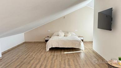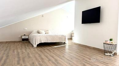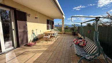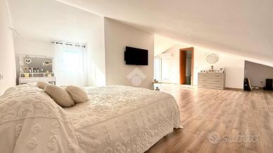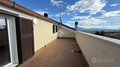 A Capena, a pochi passi dal centro e da tutti i servizi principali, sorge questo attico e superattico che conquista subito per la luce, gli spazi aperti e la sensazione di tranquillità che si respira non appena si varca la porta. Al primo livello si viene accolti da un soggiorno ampio e luminoso, dove le grandi vetrate invitano naturalmente ad uscire sul terrazzo di 40 mq: un vero prolungamento della zona giorno, perfetto per vivere all'aperto, godersi un caffè al sole o una serata con vista sulla suggestiva vallata di Capena. Accanto, la cucina a vista - comoda e completamente abitabile - regala un ulteriore affaccio su un secondo terrazzo panoramico di circa 60 mq, il luogo ideale per pranzi all'aperto o momenti di relax. Sul piano troviamo anche un bagno finestrato con doccia, una camera matrimoniale che si apre direttamente sul terrazzo e una camera singola, perfetta come stanza per i bambini, studio o ospiti. Salendo la scala interna si arriva al piano superiore, un ambiente sorprendente: un grande open space oggi utilizzato come camera matrimoniale padronale, illuminata da due finestre e arricchita da un terrazzo privato con una vista davvero particolare. Qui il tempo sembra scorrere più lento. Completano il livello un secondo bagno con doccia e la possibilità, grazie alla distribuzione degli spazi, di ricavare un'ulteriore camera. A rendere la proprietà ancora più comoda c'è un ampio box auto di 70 mq circa con bagno, ideale per chi ama lo spazio o ha necessità di deposito e laboratorio. L'attico è stato migliorato con infissi nuovi a triplo vetro, sistema di autoclave con cisterna DI 250 lt e un cappotto termico recentemente realizzato al piano superiore, che garantisce comfort sia in inverno che nelle giornate estive più calde. In ottime condizioni e pronto per essere vissuto, questo attico è perfetto per chi cerca un'abitazione accogliente, ricca di luce, silenzio e privacy, senza rinunciare alla comodità di avere ogni servizio a portata di man
