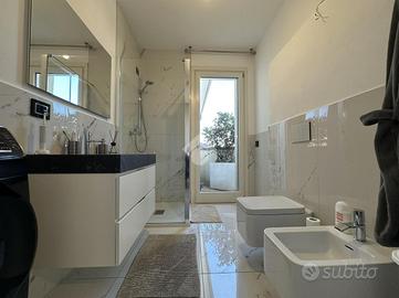 NUOVO PREZZO! In centro paese proponiamo ESCLUSIVO ELEGANTE e RAFFINATO ATTICO in CLASSE A4 con VERO TERRAZZO SOLARIUM. Il contesto in cui è inserito è caratterizzato da uno stile architettonico molto ricercato e curato che lo rendono ESCLUSIVO. La facciata è rivestita in parte in mattoncini a vista e le parti comuni in pietra e la progettazione è nata per garantire al contesto una notevole luminosità grazie all'esposizione solare aperta al sole. L'alloggio situato al piano secondo servito da ascensore (con codice/chiave personale) che sbarca direttamente nel disimpegno privato, è di oltre 200 mq su UNICO PIANO. L'alloggio è composto dal disimpegno/pianerottolo privato a cui si accede tramite ascensore e scala privata che serve l'abitazione di 125 mq circa, il locale mansardato di circa 90 mq e il terrazzo di circa 65 mq. L'abitazione è composto da una zona giorno spaziosa composta da grande soggiorno, ampia cucina abitabile e ampie aperture che accedono al TERRAZZO SOLARIUM con esposizione solare a sud. Il disimpegno zona notte serve la camera matrimoniale, la seconda camera di generose dimensioni, il bagno di servizio con balcone e il bagno padronale relax di drandi dimensioni con box doccia doppia e predisposizone per vasca idromassaggio. Il locale mansardato, travi in legno a vista bianche, è organizzato con un ambiente hobby con armadature su misura, una zona letto e il bagno dotato di doccia. Il locale sottotetto ha l'opportunità di poter essere sopraelevato e reso abitabile. L'immobile è caratterizzato da finiture extra capitolato, eseguite nel 2021, come pavimentazione zona giorno e bagni in gres effetto marmo, parquet in teak a listoni, infissi a basso emissivo bianchi, pavimentazione del locale mansardato in gres effetto legno, impianto di aria condizionata, videosorveglianza, antifurto, aspirapolvere centralizzato, zanzariere, ventilazione meccanica, canna fumaria per camino, DOMOTICA ect.. L'immobile presenta la tecnologia di costruzione a