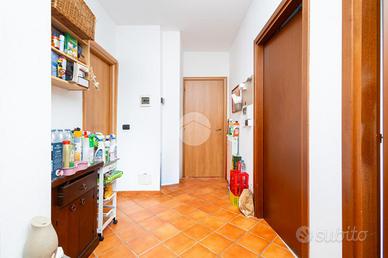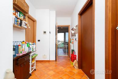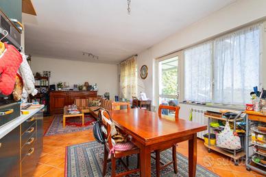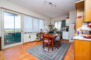 L'appartamento si trova al secondo piano di una prestigiosa villa posizionata in un contesto molto tranquillo, ma altresì comoda ai servizi che il paese può offrire. L'alloggio è stato successivamente aggiunto alla porzione di villa già presente, infatti la soluzione risale ai primi anni 2000. L'appartamento si sviluppa su un unico piano abitativo con l'ingresso nella zona giorno in grado di ospitare un'ampia cucina angolare con la zona pranzo ed una comoda zona relax. Il disimpegno conduce alla zona notte. Sono presenti due ampie camere da letto, una delle quali gode di un luminoso bagno in camera. È presente anche un secondo bagno di generose dimensioni anch'esso finestrato. Completa il piano abitativo uno spazioso ripostiglio. La scala esterna conduce al grande terrazzo panoramico dal quale è possibile ammirare il paesaggio. Completa la proprietà un posto auto all'interno del cortile. L'immobile sarà libero dal 2027. L'alloggio è di generose dimensioni e grazie alle ampie finestre presenti in ogni stanza della casa è possibile godere di ambienti estremamente luminosi ed ariosi.