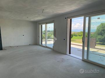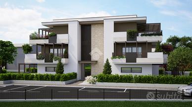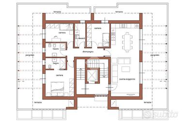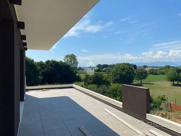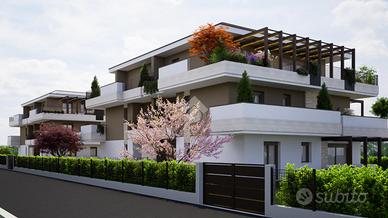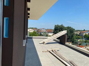 Appartamento quadrilocale composto da un'ampia zona giorno di 40 mq con cucina e salotto open-space dalla quali si accede al primo terrazzo di 68 mq. Nella zona notte troviamo una camera singola, una lavanderia, una camera doppia, due bagni e una camera matrimoniale, contornati da 68 mq di terrrazzo. Conclude la proprietà un garage di 40 mq al piano interrato, con accesso dal vano scale.