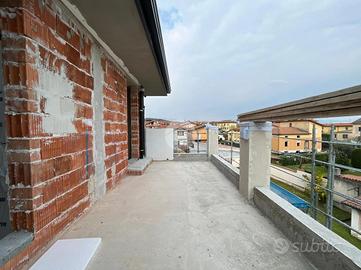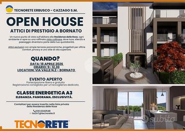 ATTICO QUADRILOCALE DI NUOVA COSTRUZIONE CON 3 TERRAZZE PANORAMICHE Vivere nel cuore della Franciacorta, nel comune di Cazzago San Martino - frazione Bornato, in via Valle, a due passi dal Castello di Bornato, in un attico dove ogni ambiente si apre su tre terrazze private immerse nel verde dei vigneti. Tecnorete Erbusco propone in esclusiva una soluzione unica, progettata per offrire luce, privacy e spazi esterni realmente vivibili. L'immobile si distingue per le ampie terrazze con affacci aperti sul paesaggio, che garantiscono riservatezza e una piacevole sensazione di indipendenza, creando una perfetta continuità tra interno ed esterno. Ogni ambiente della casa ha accesso diretto agli spazi esterni, una caratteristica rara che valorizza l'intera abitazione. Open Day 18/04/2026 - Vivi in anteprima l'esperienza di questo attico con terrazze affacciate sui vigneti della Franciacorta. Contattaci per riservare la tua visita e non perdere questa esclusiva opportunità. Gli spazi risultano ben distribuiti e fruibili in modo indipendente, garantendo comfort e privacy: Zona giorno: living open space con cucina a vista e grandi vetrate, con ottima esposizione che garantisce luce naturale durante tutto l'arco della giornata, accesso diretto a due terrazze panoramiche ideali per momenti di relax e convivialita. Zona notte: suite matrimoniale con bagno privato e accesso diretto alla terrazza, due camere con accesso diretto alla terrazza che assicurano sfoghi esterni indipendenti e ben fruibili, secondo bagno, locale lavanderia dedicato. L'attico è inserito nel nuovo ed esclusivo contesto "Residence delle Rose", una realizzazione di poche unità abitative progettata con elevati standard costruttivi e classe energetica A3. Dotazioni: impianto fotovoltaico, pompa di calore, predisposizione ventilazione meccanica controllata, impianti di ultima generazione. Completano la proprietà: autorimesse interrate disponibili, agevolazioni fiscali su acquisto box, possibilità di