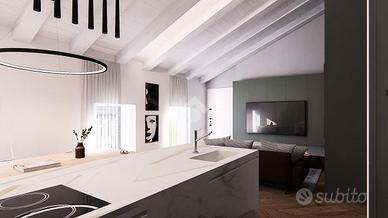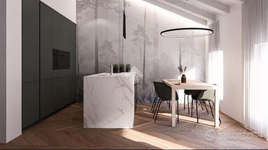 Salendo al secondo piano e volgendo lo sguardo a destra, prima di varcare la porta d'ingresso, si nota immediatamente la centrale termica, utilizzabile anche come lavanderia. L'abitazione si estende su 103 mq, con una spaziosa zona living open space che include cucina e soggiorno, dove i pavimenti saranno in piastrelle di gres porcellanato effetto legno, o in listoni di legno, disponibili in diverse misure e tonalità.